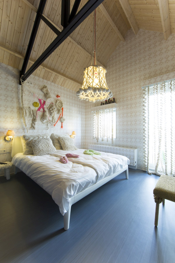 Kamer 33 Breien door Caroline Evers <p>De breikamer is ronduit spectaculair te noemen. De lampen, gordijnen en decoraties zijn uitgevoerd met breiwerk in verschillende breitechnieken.&nbsp;Zelfs de stoelen zijn volledig door breiwerk ingepakt. Ook voor mensen die niets met breien hebben is deze kamer zeer de moeite waard.</p> <p>In de Loft Room staat een tweepersoonsbed van 1.60 bij 2.00 meter.&nbsp;</p> <p>Klik op de button &#39;boek een Loft Room&#39; hiernaast voor de beschikbaarheid van een van onze loft rooms. Wilt u specifiek de kamer van Caroline Evers reserveren, <a href="mailto:receptie@hotelmodez.nl">mail</a> of <a href="tel:+31026440993">bel</a> onze receptie.</p>