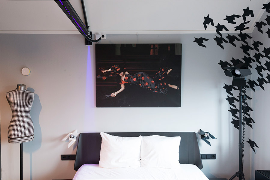 Kamer 7 Fournituren Thomas Voorn <p>In deze kamer zijn alle attributen die gebruikt worden in het modevak verwerkt in het 3D behang. Zelfs het plafond, de lampen en de gordijnen doen mee in het ontwerp. In de nachtkastjes zijn diverse attributen aanwezig. Het is verbazingwekkend om te zien hoeveel verschillende kleine materialen in de mode worden<br /> gebruikt.</p> <p>In de Small Room staat een klein tweepersoonsbed van 1.40 bij 2.00 meter.</p> <p>Klik op de button &#39;boek een Small Room&#39; hiernaast om de beschikbaarheid van onze small rooms te bekijken. Wilt u specifiek de kamer van Thomas Voorn reserveren, <a href="mailto:receptie@hotelmodez.nl">mail</a> of <a href="tel:+31026440993">bel</a><a href="http://tel:+31026440993"> </a> onze receptie.</p>